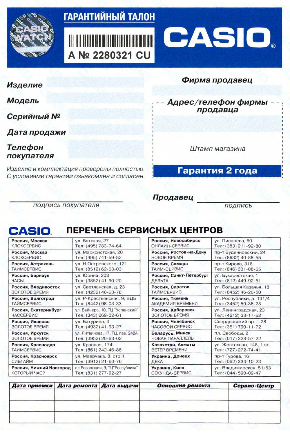 - Есть перечень сервисных центров Casio, работающих в разных городах.