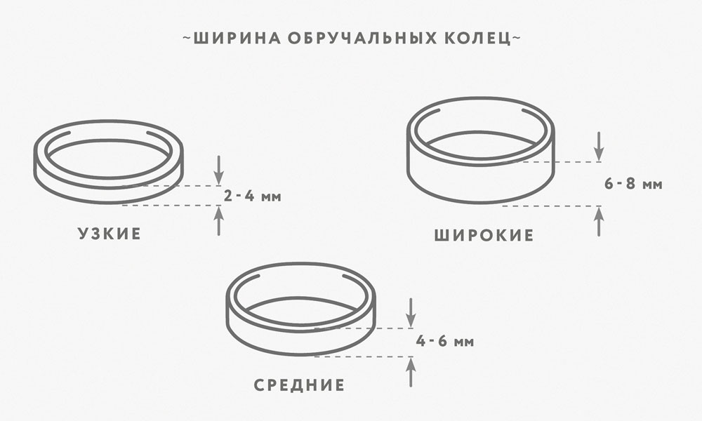 - Надежнее всего отправиться в магазин с уже имеющимся кольцом, чтобы на базе него выбрать новое. Правда, нужно учитывать, что размер узкого кольца будет отличаться от широкой модели, которая как правило, имеет чуть больший размер;