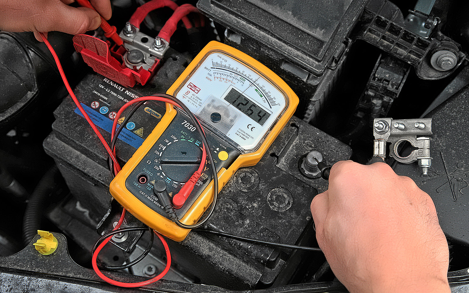 - Замеры напряжения на клеммах при помощи мультиметра. Напряжение на новой АКБ должно быть не ниже 12.6 Вольт.
