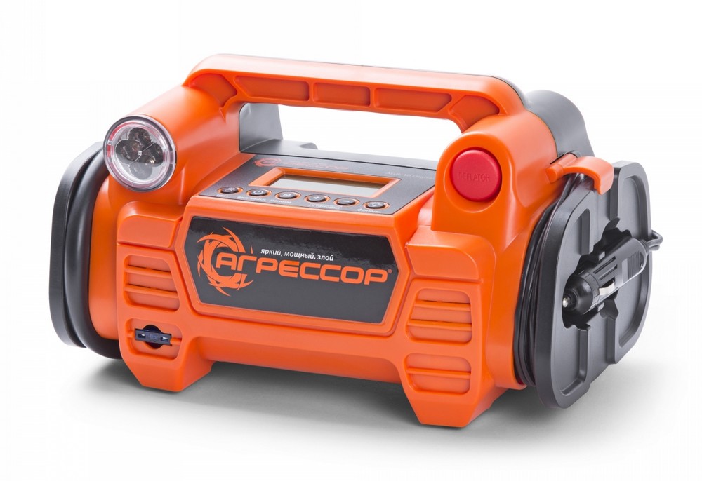 Подтверждая свою репутацию, AGR не скупится на комплектацию: помимо переходников на клеммы, в ней есть пистолет для накачки шин и переходник для использования пневматического инструмента.