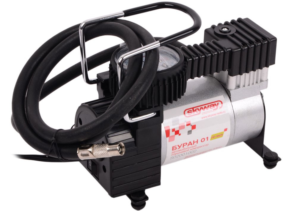 Хороший универсальный насос. Обеспечивает увеличение давления до нормы даже у небольшого грузового автомобиля за несколько минут за счет применения двухпоршневой схемы нагнетателя. Помещенный в металлический корпус мощный электродвигатель питается напрямую от аккумулятора для увеличения тока. В соединительный кабель встроен плавкий предохранитель.