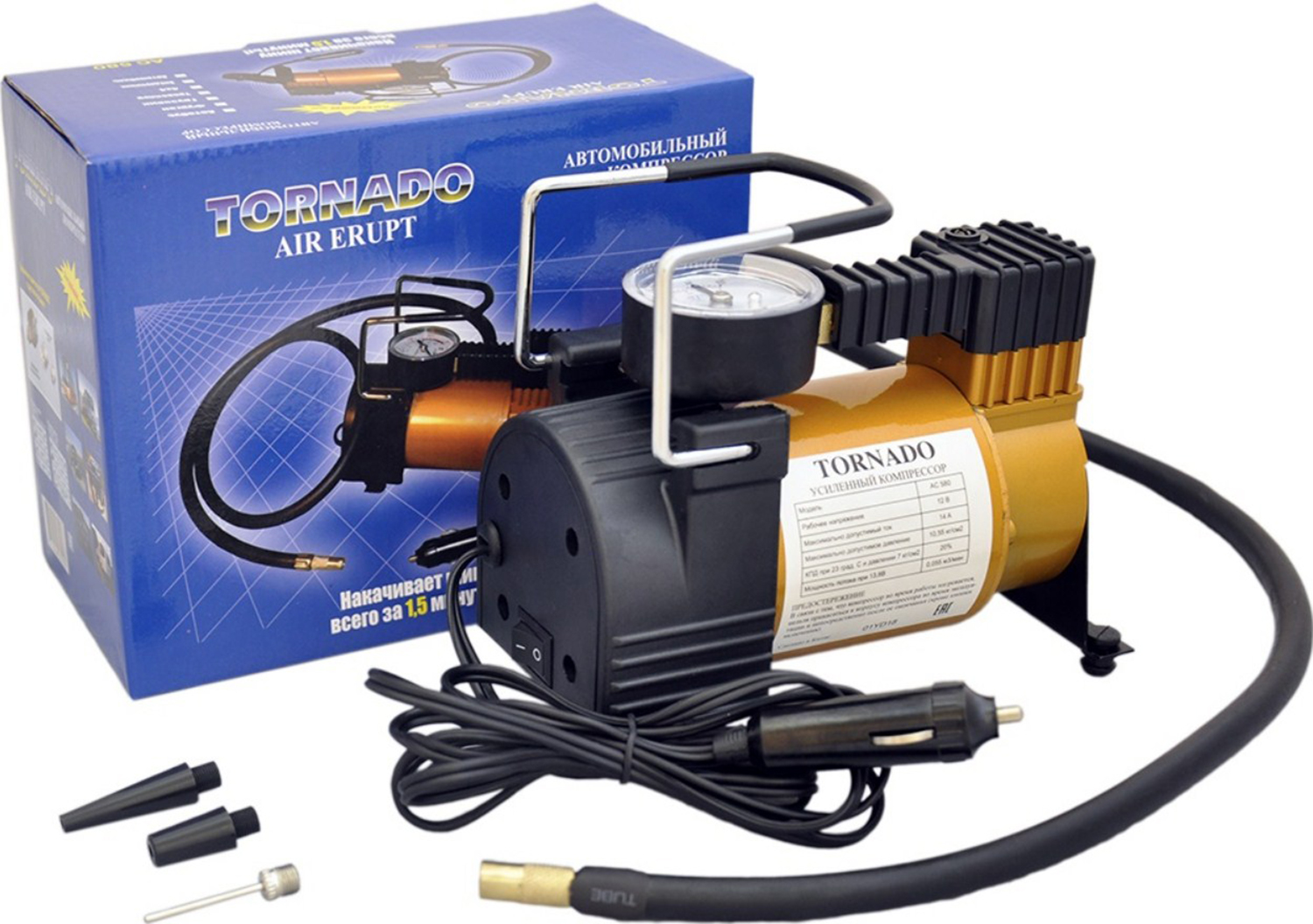 SWAT SWT-106 – очень дешёвый электрический компрессор, работающий от прикуривателя автомобиля. Также может подключаться и к аккумулятору. Очень компактный и лёгкий. Его вес равен всего 2,1 кг. Устройство очень надёжное и славится довольно высокой производительностью – 60 л/мин. В комплекте есть аналоговый манометр и насадки для накачки спортивного инвентаря и других надувных изделий из резины. Кабель питания очень длинный. Его длина составляет целых 2,8 метра. Насос может работать непрерывно очень длительное время. А стоит он не более 1800 рублей. Нередко компрессор можно приобрести значительно дешевле.