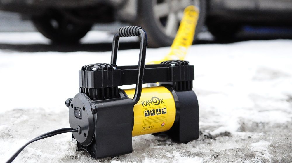Компрессор Качок K90 не зря вошёл в данный топ, так как обладает неплохой производительностью, надёжностью, доступной ценой и иными положительными качествами. Производительность устройства составляет 40 л/мин. Шланг и провод довольно длинные. Работает от прикуривателя. Оснащено манометром. Продаётся с насадками для велосипедных колёс, лодок, мячей и т. д., а также с сумкой для хранения. Стоит насос от 2500 до 3000 рублей.