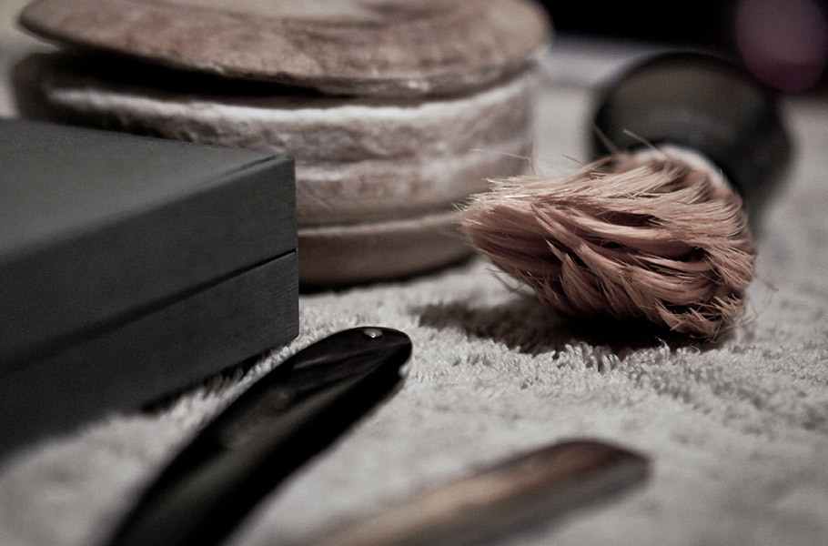 Опционально в процессе сбривания нужно полотенце для формирования горячего компресса и квасцы, обеспечивающие защиту от случайных порезов.
