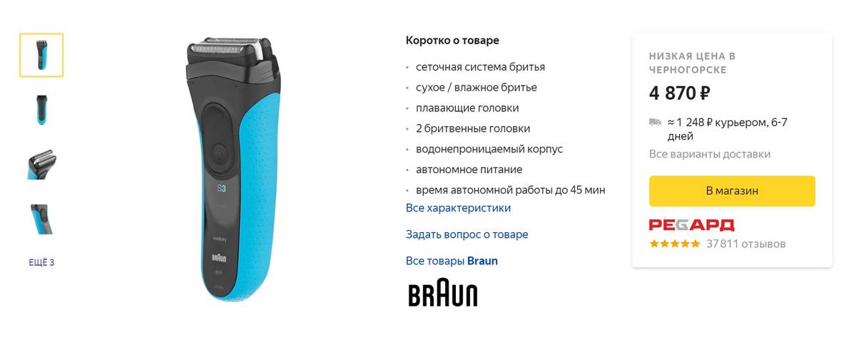 Можно было выбрать электрическую модель с роторами — там волоски сбриваются вращающимся элементом. Но, видимо, тогда по телевизору чаще рекламировали модели с сеткой. Возможно, роторные бреют лучше, но после покупки у меня уже не возникло желания продолжать экспериментировать с электробритвами.