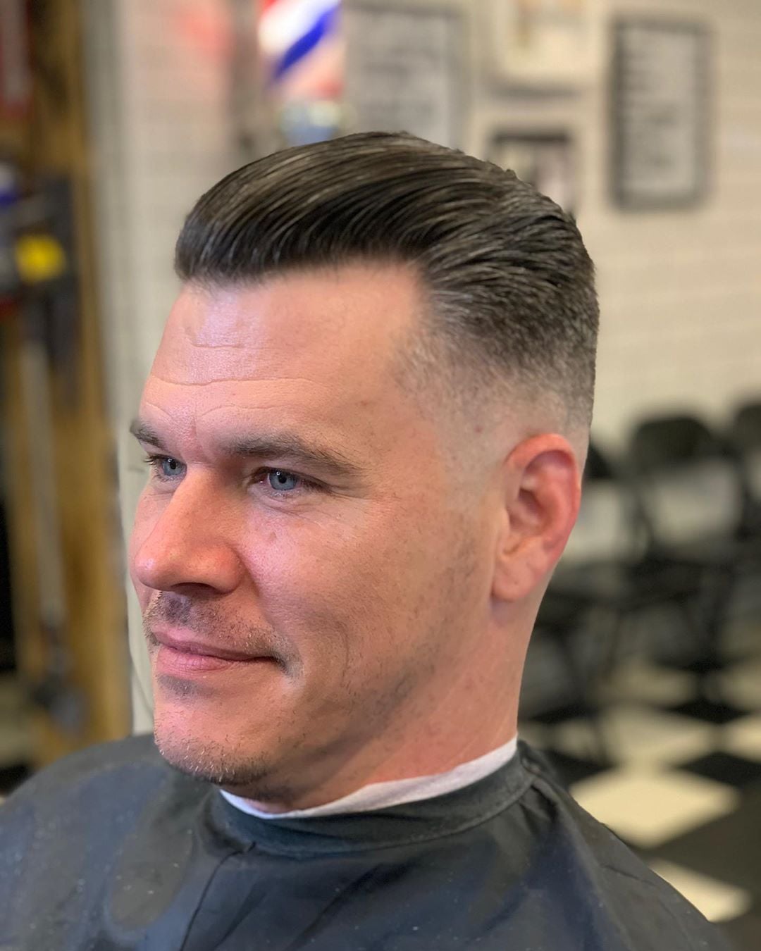 Этот вариант предусмотрен стилистами для тех, кто любит носить стрижки покороче, без объемных локонов на макушке. Чем-то она напоминает стрижку «милитари», но при этом машинкой стригут только затылок и висок, остальное дорабатывают ножницами. Главным отличием от классического варианта является очень короткие до 1 мм волосы на височной и затылочной частях и объемом до 4 см на макушке и теменной зоне. При этом также обязательно соблюдается плавный переход от короткого к длинному.