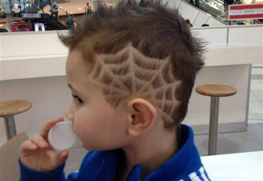 Наносят его после того, как выполнена базовая стрижка. Самыми распространёнными рисунками для детей сегодня признаны паутина, молния и полосы.
