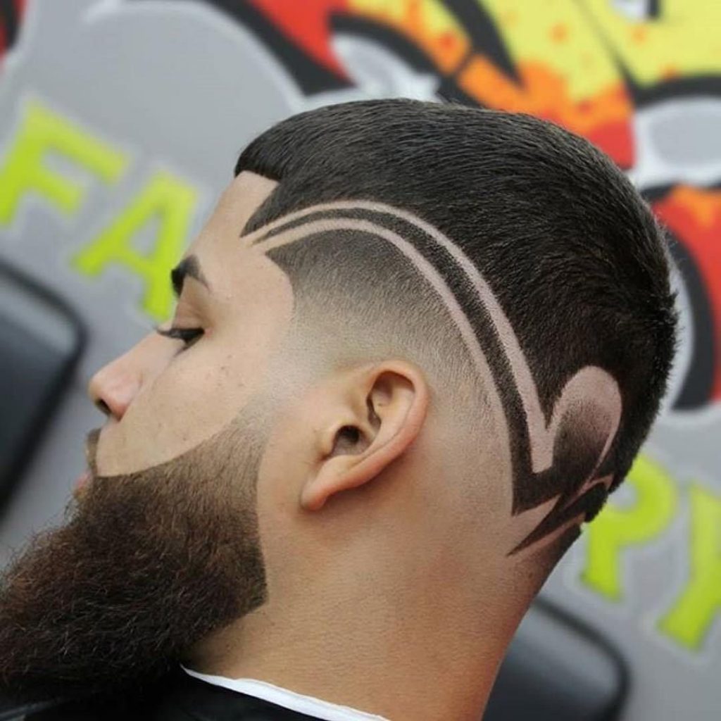 Это прическа под силу только очень умелому мастеру. Она подразумевает наличие линий, завитков, а также простых или сложных фигур, выполненных при помощи бритвы на короткой части прически. Иногда можно встретить на мужских головах просто шедевры, выполненные рукой талантливого стилиста. Делать выбор в пользу этой прически стоит лишь в том случае, если вы не боитесь, а наоборот жаждете постоянного пристального внимания окружающих.