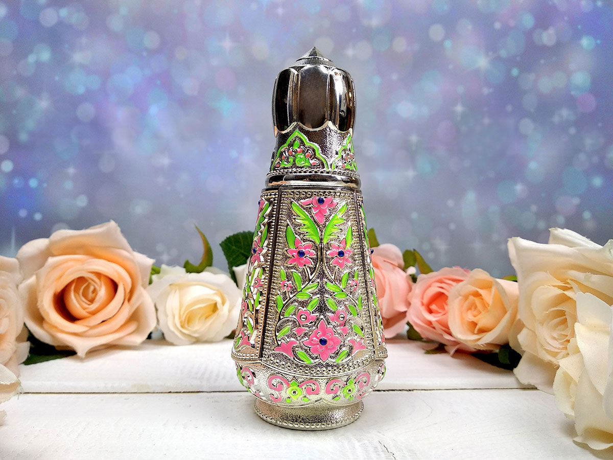 Восточные духи – сочетание аромат ванили и розы. Они сладкие, но при этом нет ощущения приторности. Дополняет арабский парфюм нотки мускуса, что применимо для использования даже в жаркое лето.