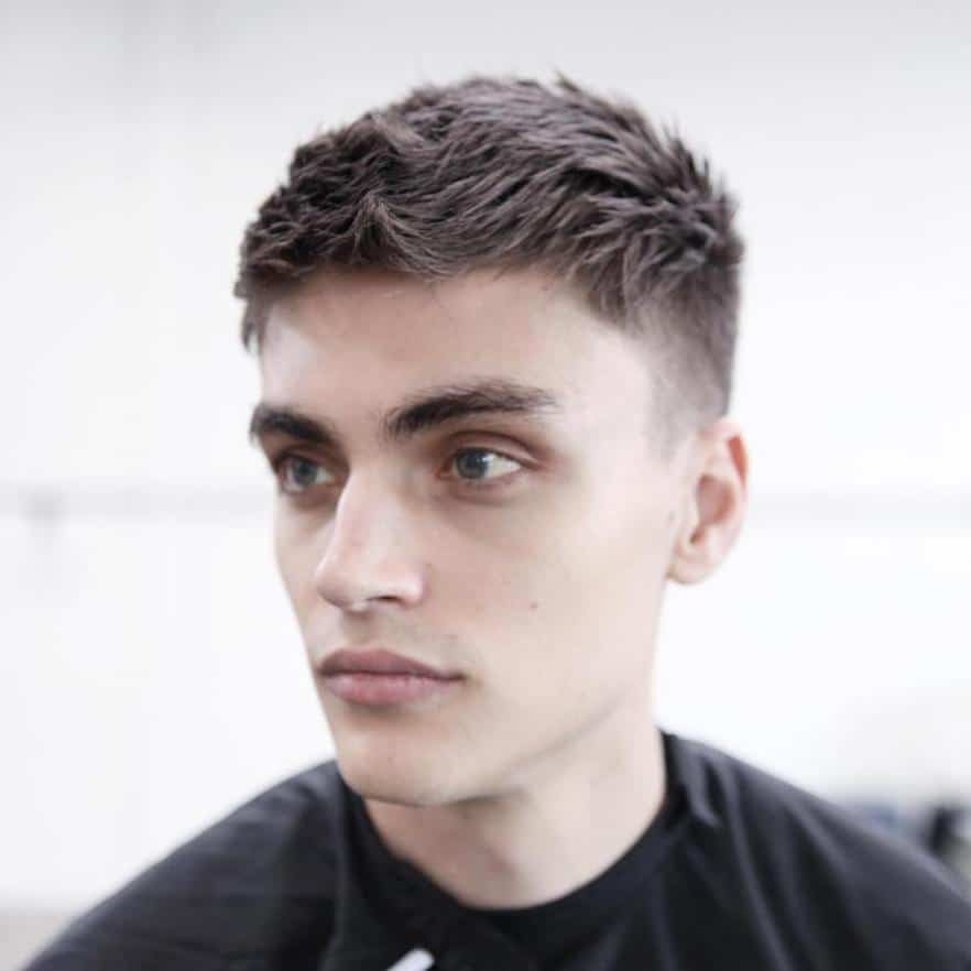 Этот вариант отлично подойдет для жестких волос. Короткие виски и затылок сочетаются с небольшой длиной на макушке. Обладателям квадратного лица лучше не рисковать — этот вариант сильно подчеркнет углы.