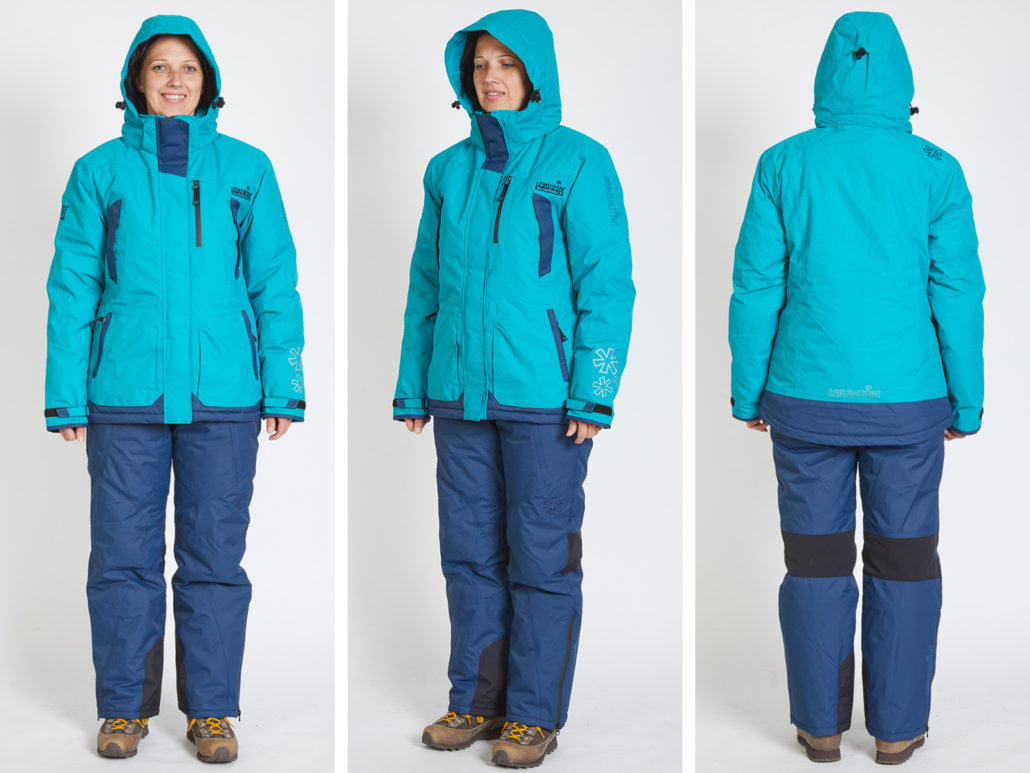 Костюм состоит из полукомбинезона и куртки. Его верх изготовлен из мембранного материала Aero-Tex, он водонепроницаем, но при этом хорошо дышит. Утеплитель Synthetic Down, который расположен под ним, хорошо удерживает тепло и при этом весит совсем немного.