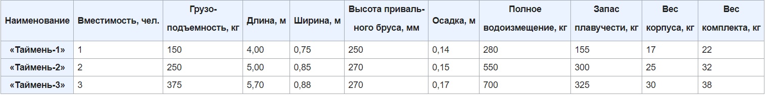 Технические характеристики байдарки Таймень