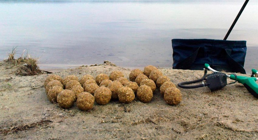 Данные компоненты можно смешивать друг с другом непосредственно на берегу водоема вместе с землей, вместо земли также можно использовать и глину. Затем из полученной смеси следует сформировать шары, при помощи которых будет прикармливаться к месту ловли рыба.