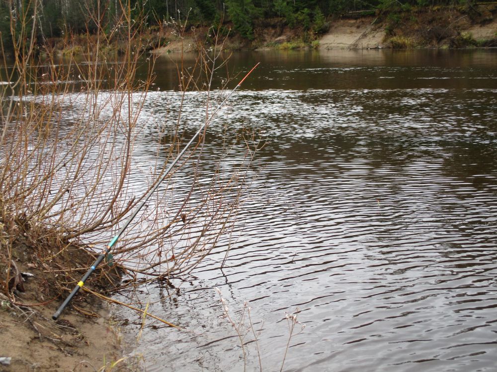 Если вода прозрачная — и рыба вас явно пугается, то оставьте свое удилище на подставке или прибрежных кустах — и отойдите на несколько метров от него (фото 8). Часто хватает нескольких минут, чтобы хищник успокоился и совершил бросок на вашего малька. Да, при подсечке и вываживании вы, вероятно, распугаете остальную стаю, но если место стоящее и у вас есть запас времени, то вполне можно рассчитывать и на следующие поклевки полосатого, пользуясь этой тактикой.