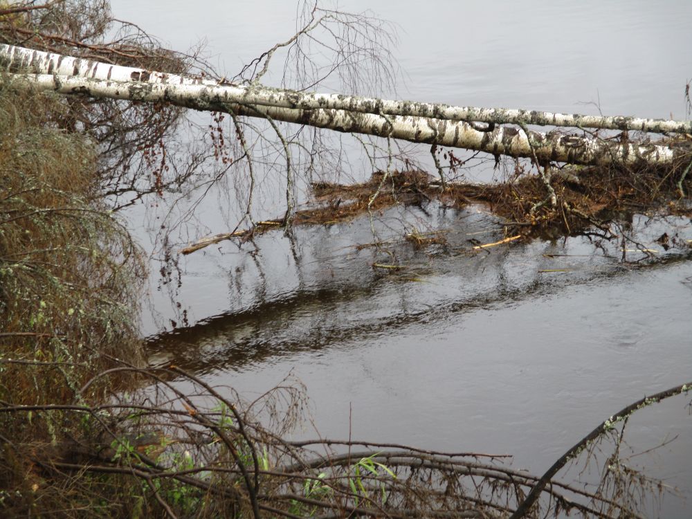 Еще одно перспективное место – участок чуть ниже упавшего в воду дерева, где более спокойное течение и присутствует глубина (фото 6). Подобные места хищник очень любит. Здесь нужно обязательно попробовать половить, но все ваши действия должны быть аккуратными, т.е. подходить нужно тихо, заброс делать без шума, в процессе ловли не совершать резких движений. В этом случае есть реальная возможность поймать с одного места десяток-другой «полосатиков», прежде чем они насторожатся или покинут на время этот участок.