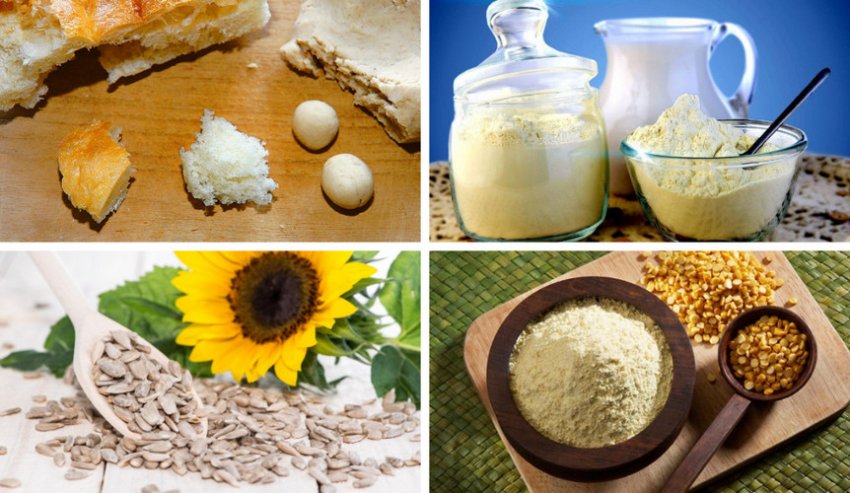 Вечером пожарить хлопья и перемолоть их вместе с семенами. Добавить к ним панировочные сухари или сухой хлеб (перемолотый в блендере). Затем высыпать подготовленные ингредиенты в пакет. Уже около водоёма следует завершить приготовление, добавив воду и ароматизатор. Скатать катышки.