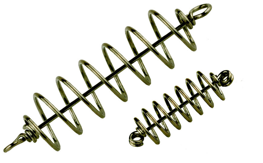 В кормушку пружину следует добавлять вязкую прикормку, поскольку рыхлая из нее быстро вымоется даже при отсутствии течения. Пружина хороша тем, что ее можно использовать, как конечное грузило оснастки и как скользящий груз.
