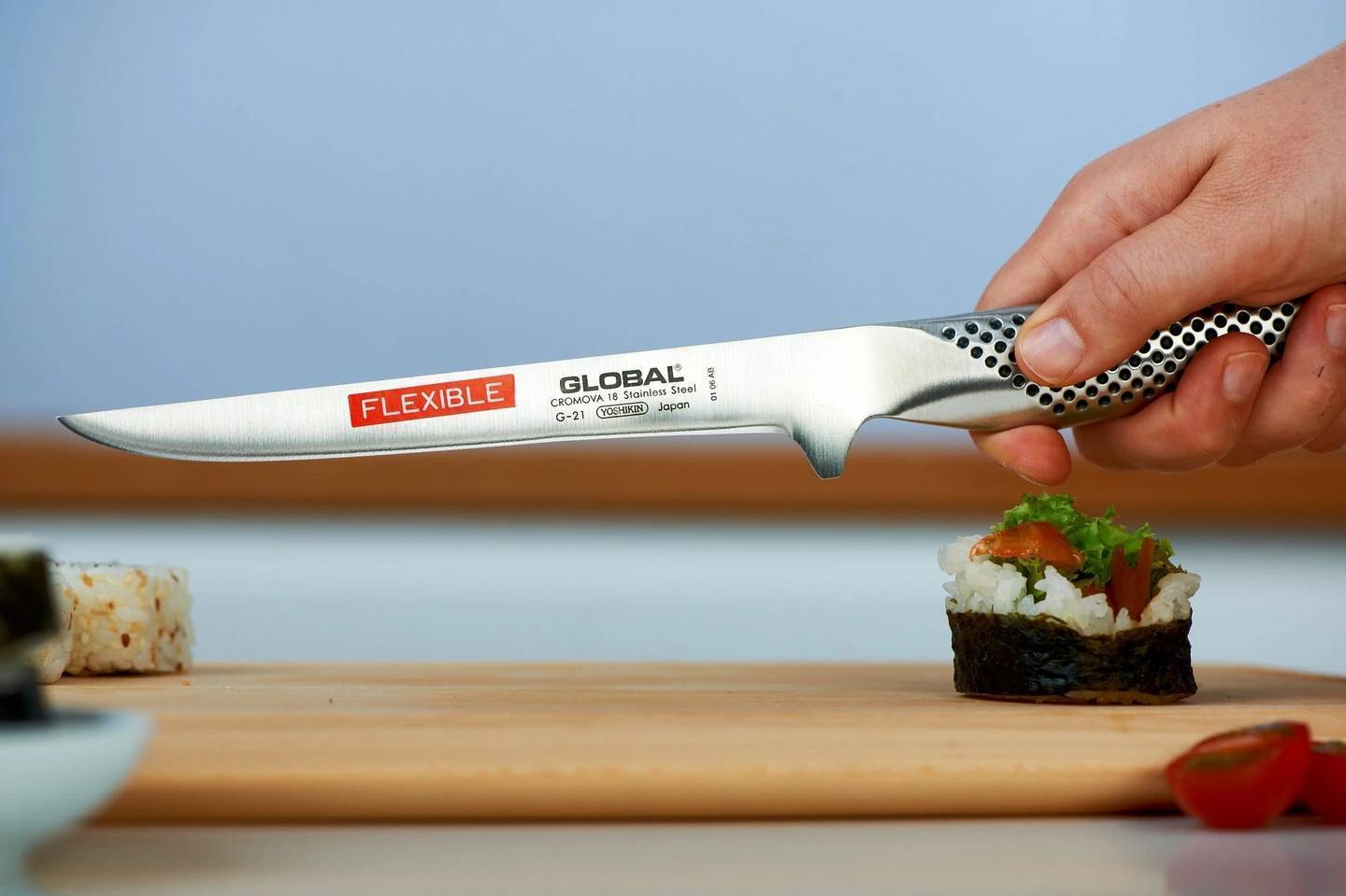 Среди шеф-поваров со всего мира любовью пользуются ножи японского производителя Global. Двусторонняя заточка, Идеальное сочетания высоких технологий, материалов и дизайна. В сплав стали добавлен ванадий и молибден. Японские ножи относятся к самой высокой ценовой категории, финские – к самой бюджетной.