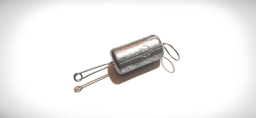 Для конструкции хорошо подходит продолговатое грузило весом 30−50 г любой формы со сквозным отверстием по центру. Чтобы его получить, при отливке в форму закладывается металлический стержень. Его предварительно смазывают литолом для облегчения последующего удаления из заготовки.