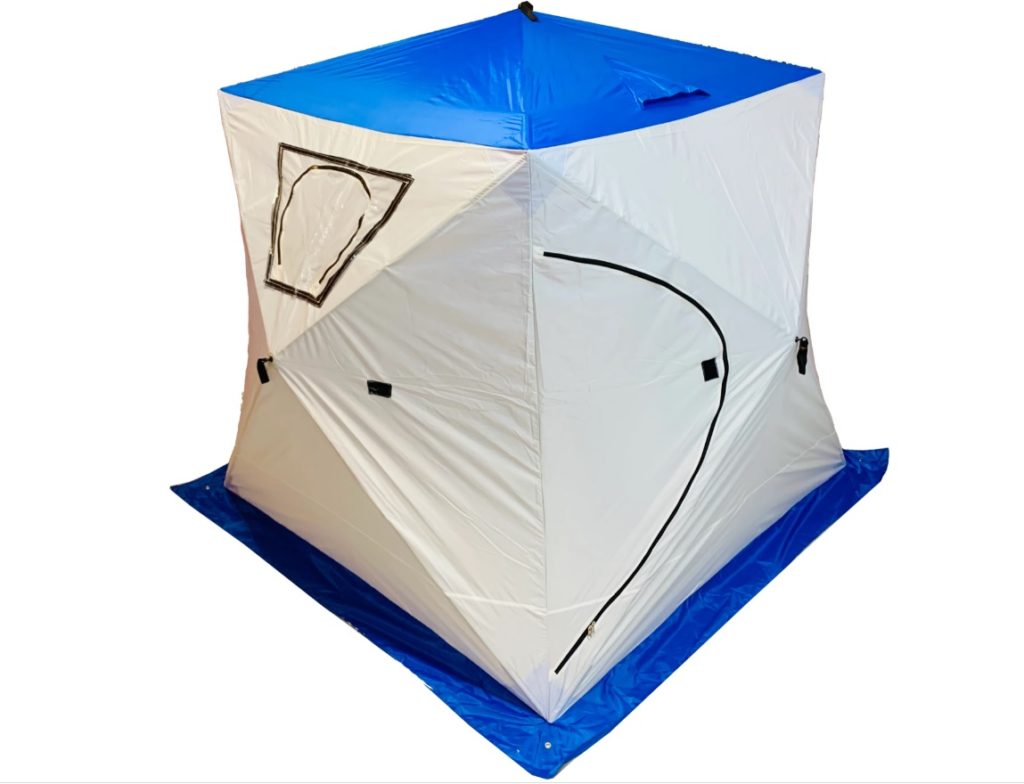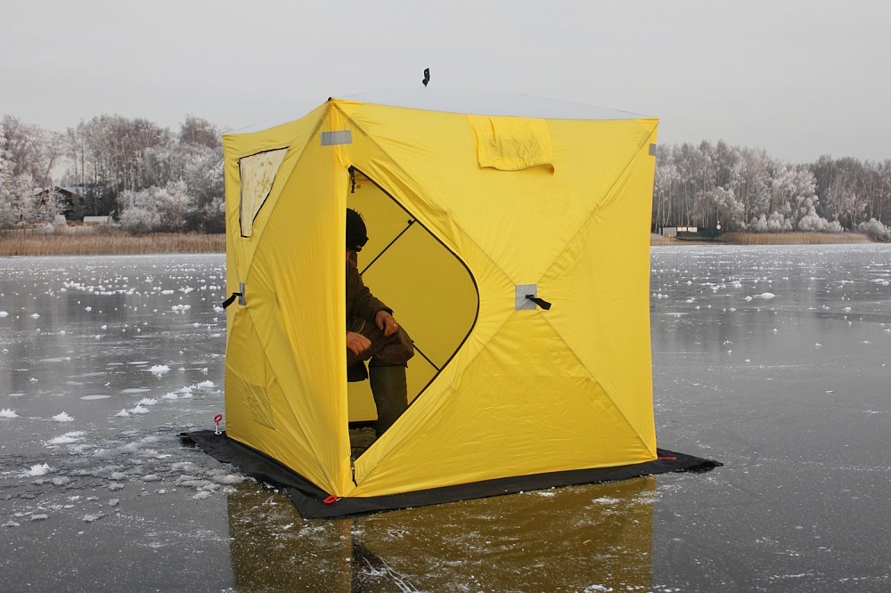Не так давно самой популярной формой палатки для зимней рыбалки являлась зонтичная. Сегодня появились новые виды, более усовершенствованные и практичные. Палатка кубической формы, хоть и не имеет такую обтекаемую форму, зато ее можно довольно просто установить даже при сильном ветре. Для этого необходимо всего лишь прикрепить дно с помощью буравчиков, а после этого только расправить конструкцию. Также, после нужно будет закрепить ее растяжкой со стороны ветра.