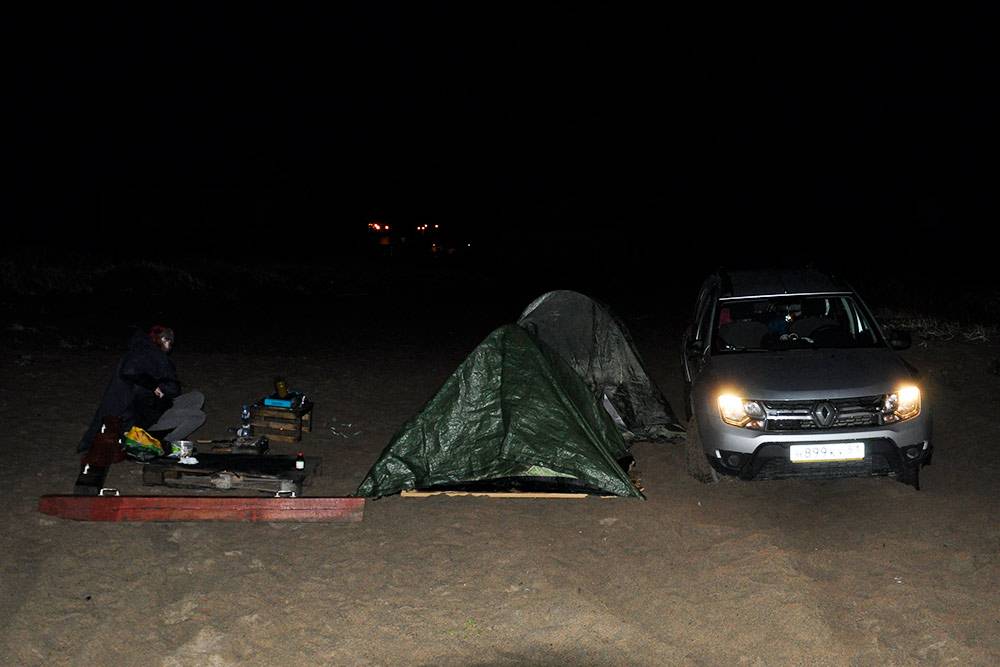 Рядом поставили машину, чтобы хоть немного закрыть палатки и нашу импровизированную кухню от морского бриза