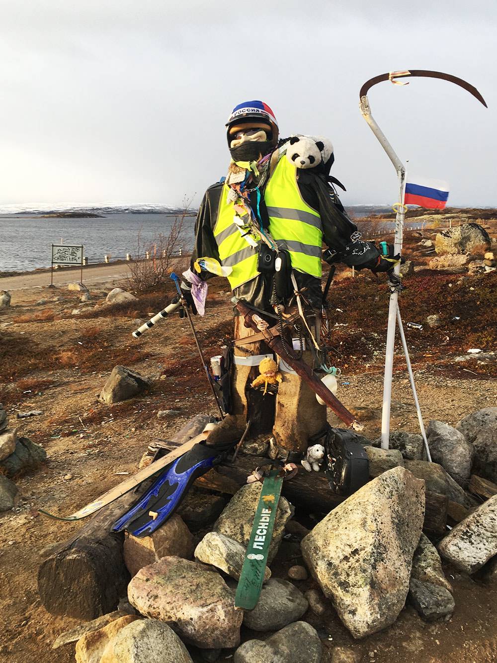 По дороге встречается и такое. Говорят, что этого персонажа зовут «Россия». Судя по его внешнему виду, многие проезжающие решают поделиться с ним какой-либо вещью
