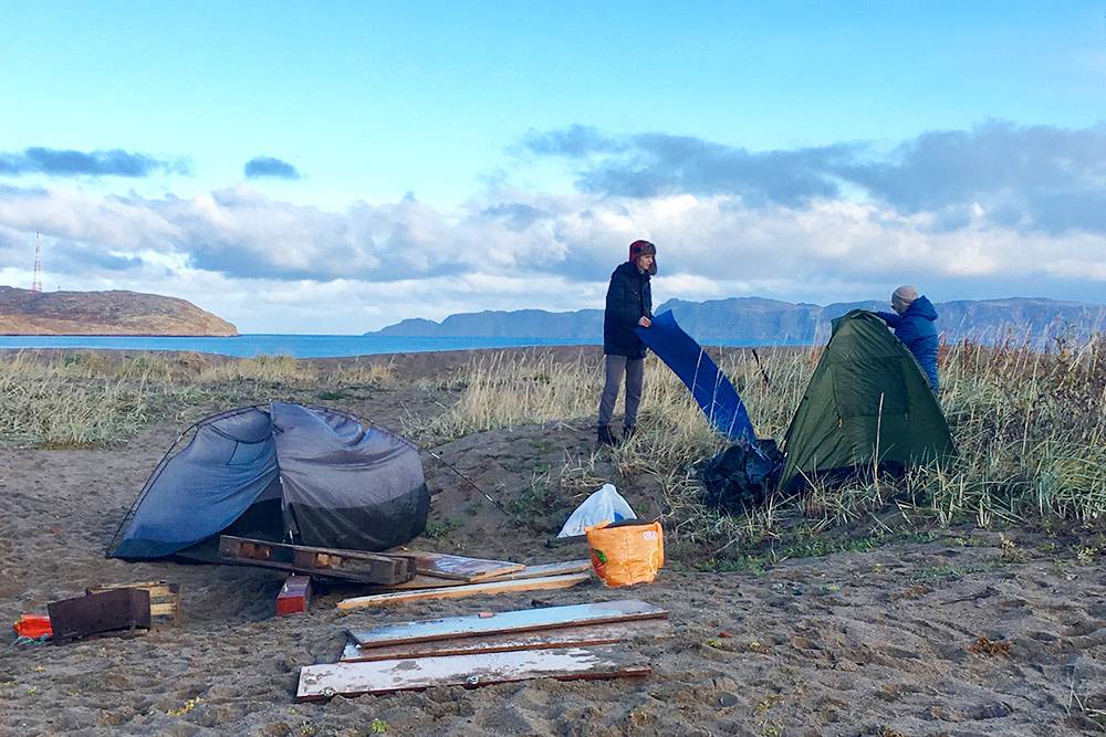 С палаткой сложно. Сначала надо искать подходящее место для ночлега. Погода может сильно измениться. Когда мы ночевали в Териберке, погода менялась чуть ли не каждые 15 минут: в один момент мы смотрели на красивое звездное небо — а потом сразу начался сильнейший ветер и град.