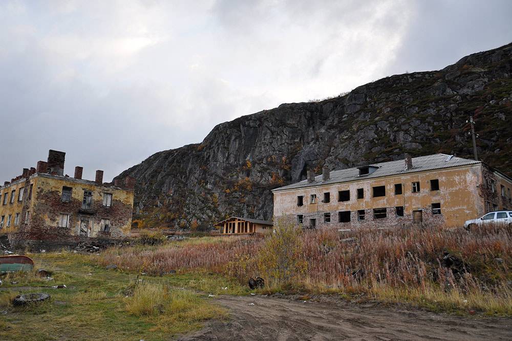 Заброшенные дома, расположенные прямо у скал, — немые свидетельства того, как непросто жить на Крайнем Севере