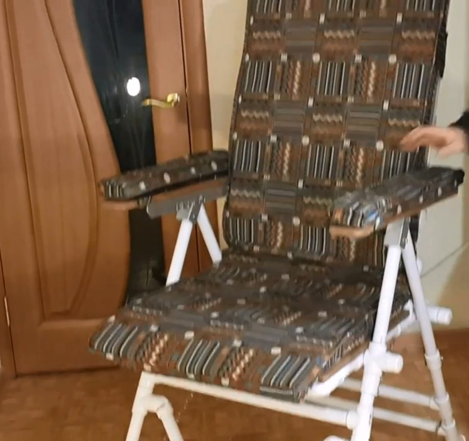 Несмотря на то что пластмасса является нежелательным материалом для создания рыбацкого стула, усиленный вариант — полипропилен, все же подойдет. Для начала создается чертеж с требуемыми размерами. Затем следует приобрести 12 полипропиленовых трубок одной длины, схожего диаметра. Для соединения этих элементов также потребуется паяльник.