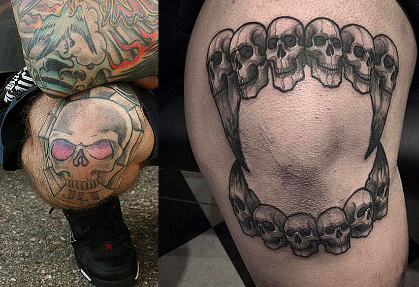 Тату череп на коленях – лишь одно из популярных решений. Также стоит отметить изображения хищных животных и футбольные мячи. Кроме того, на коленях парней можно увидеть интересные надписи и узоры, имеющие для своего владельца особое значение. Еще больше крутых идей можно увидеть на фото, представленных ниже.