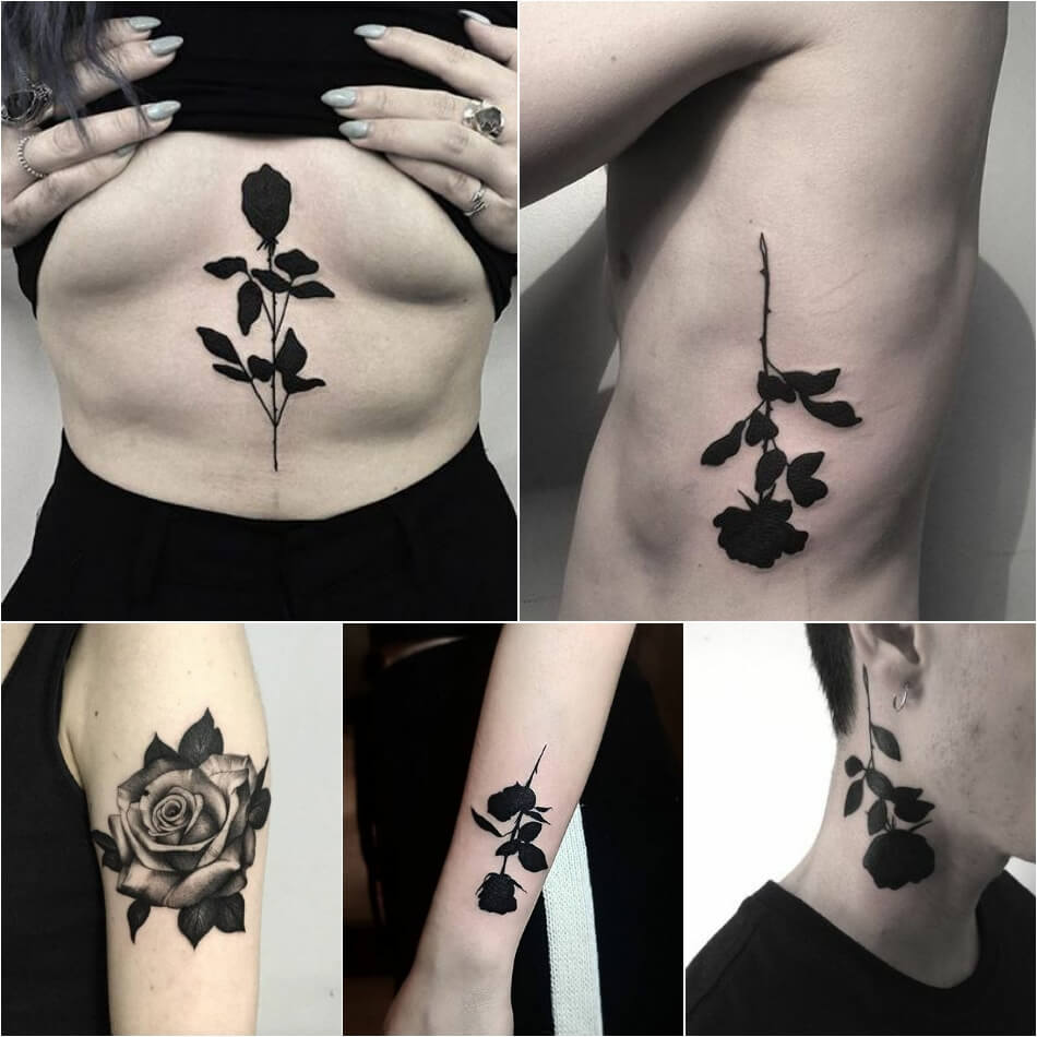 Тату Черная роза – символ грусти, прощания и разлуки. Тату черная роза может означать потерю любви. Хотя не все тату черного цвета должны трактоваться таким образом. Тату черная роза может символизировать, как и синяя роза, недостижимый идеал.