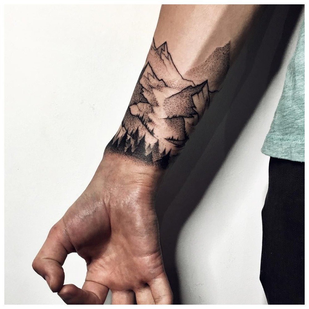 Часто мужчины выбирают однотонные тату с четкими линиями. Выбор цветного тату свидетельствует о приверженности старой школе. Большая часть тату на запястье для мужчин имеет устоявшийся смысл.