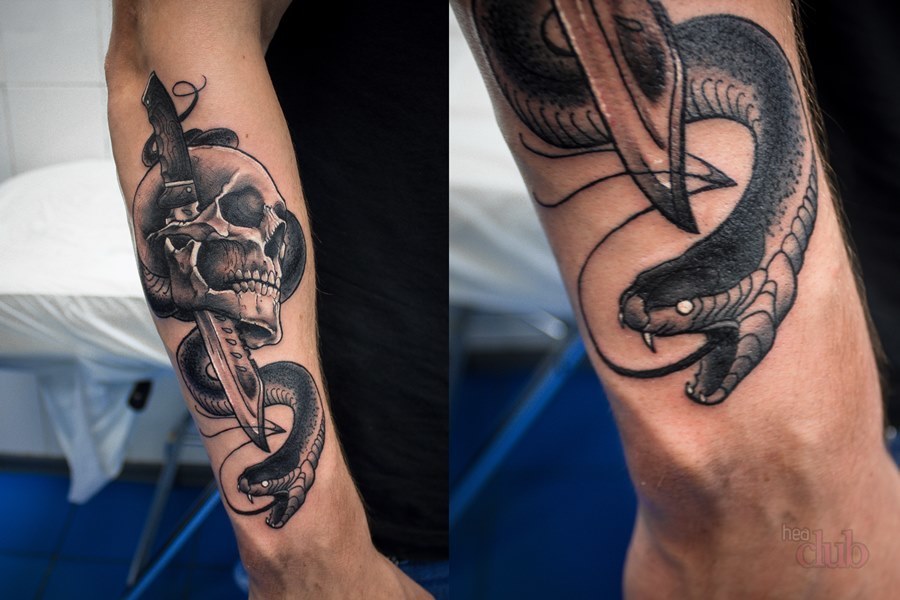 Люди, выбирающие эскиз татуировки змеи на руке с острыми предметами, как правило, очень импульсивны и упрямы. Они показывают свое бесстрашие, и умение справляться с невзгодами жизни. Женская же трактовка таких сюжетов изображается более сдержанно и мягко, но не отличается от мужской значением.