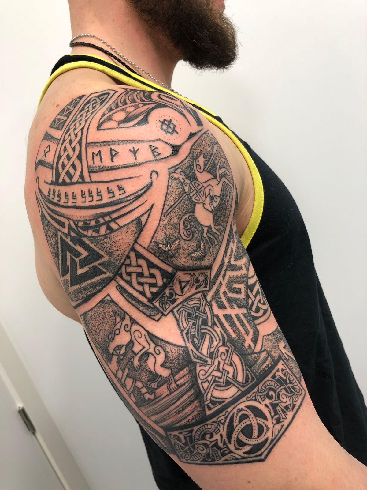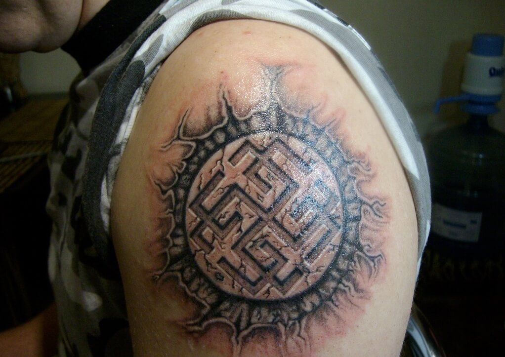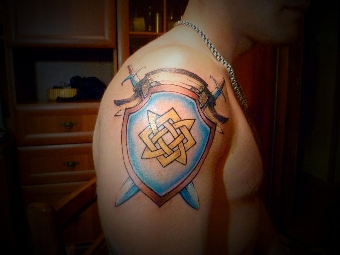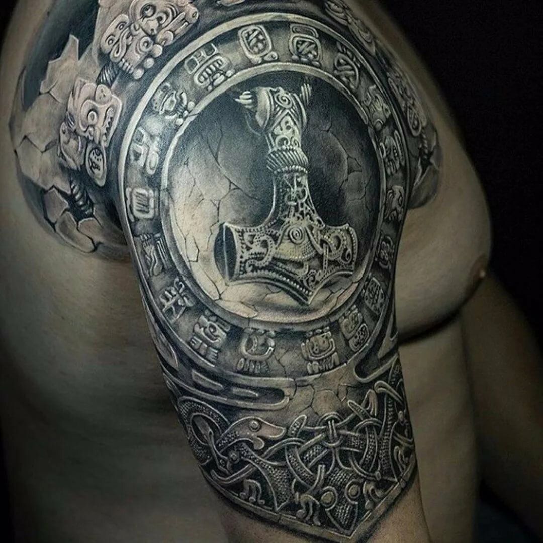Так как плечи близко располагаются к голове, чаще всего на плече советуют наносить тату обереги, символику, благодаря чему можно защитить разум от негатива, а жизнь от зла.