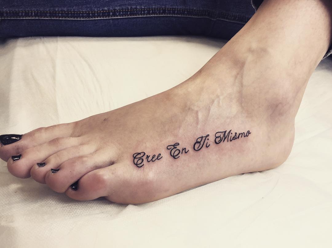 На ногах татуировки надписи на латыни могут касаться мотивации и движения вперед, поэтому сюда наносят текст, придающий сил, удачу, целеустремленность. Религиозные тату на ногах изображаются крайне редко.