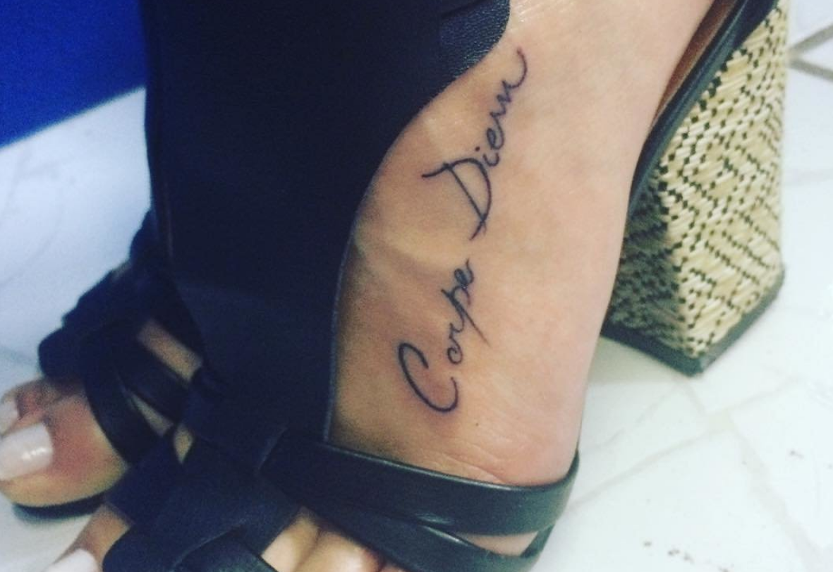 Весьма гармонично смотрятся женские надписи на латыни, набитые на ноге. Уместными являются словосочетания «Noli me tangere» (Не тронь меня»), «Vale et me ama» («Прощай и люби меня»), «Carpe diem» («живи моментом»).