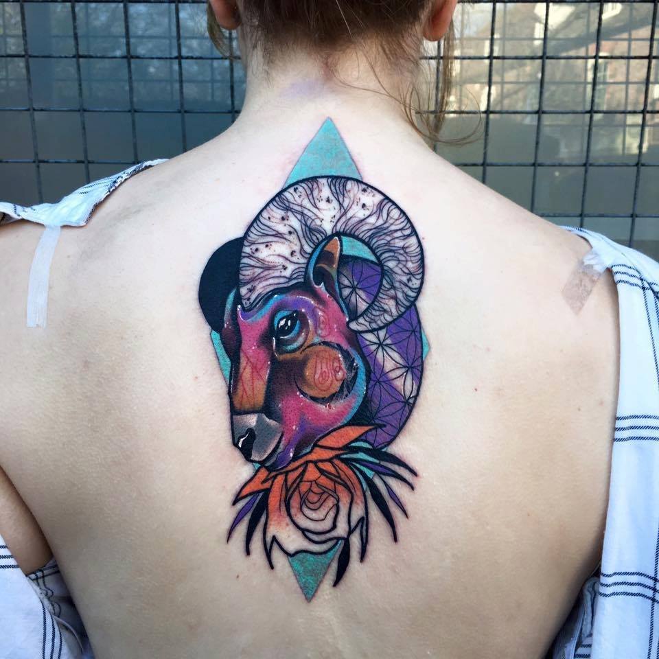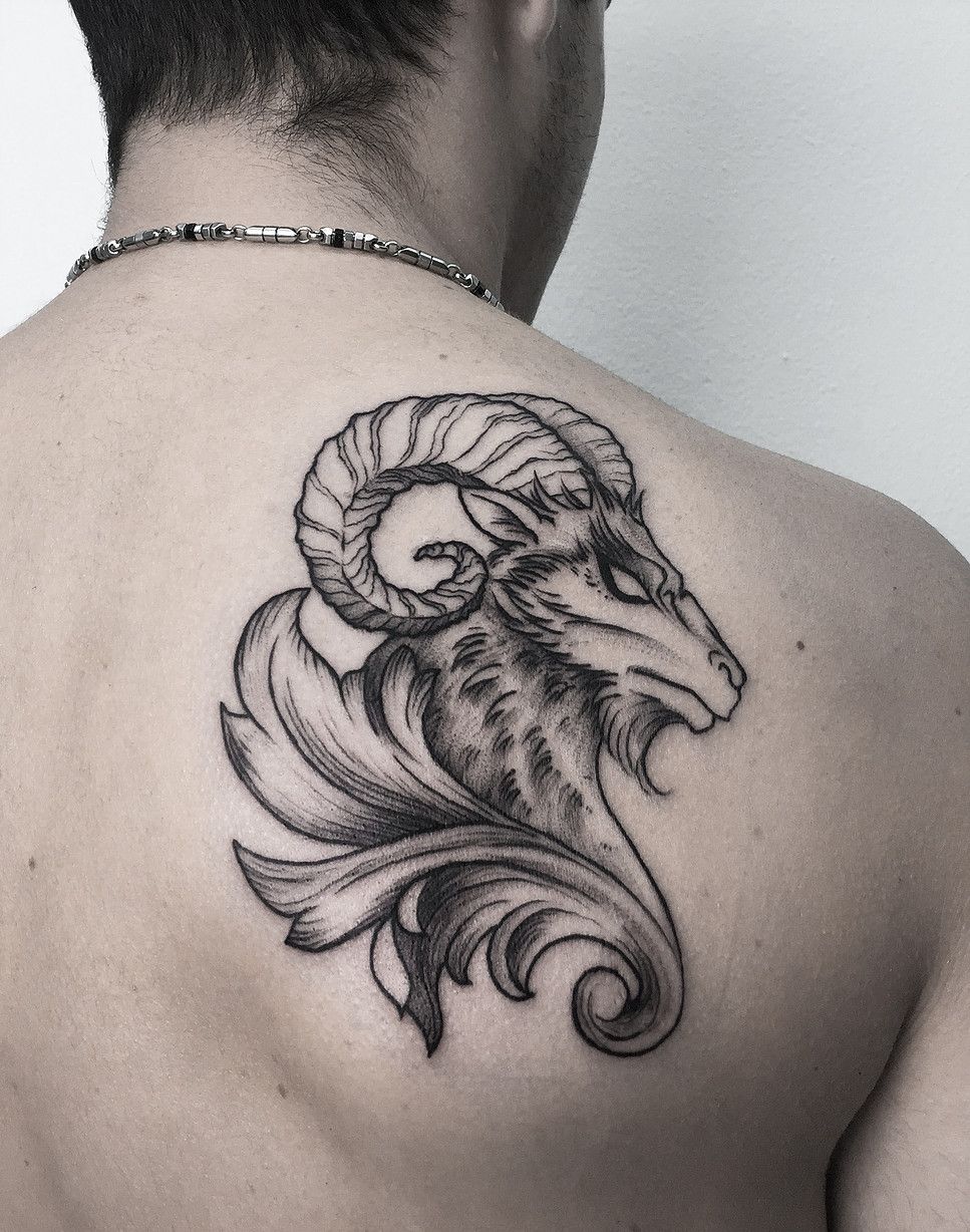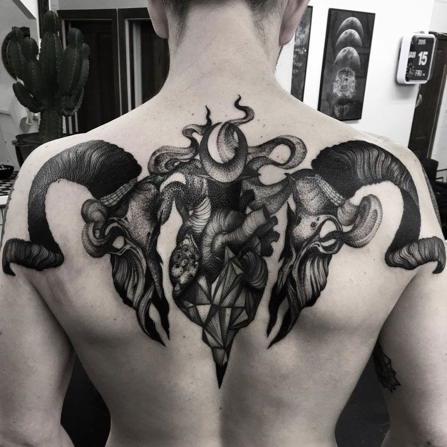 Каждая татуировка Овна носит какие-то свои индивидуальные особенности. Обычно перед созданием столь масштабного тату мастер и клиент долго выбирают эскиз. Порой из сотни разных эскизов выбирается несколько, которые в итоге объединять в уникальное изображение.