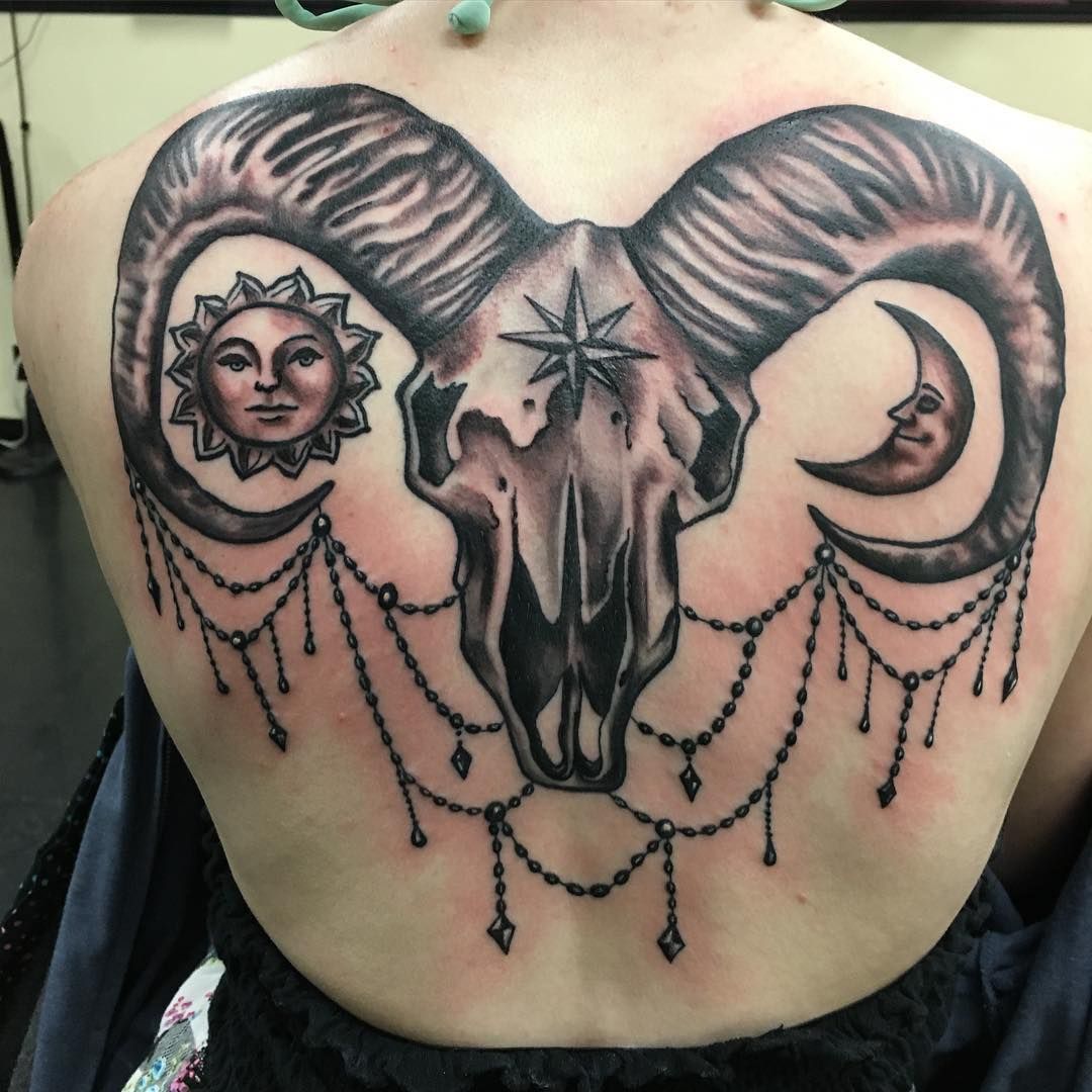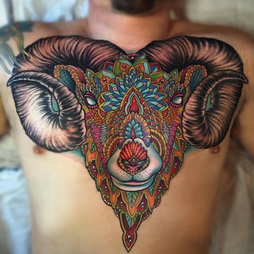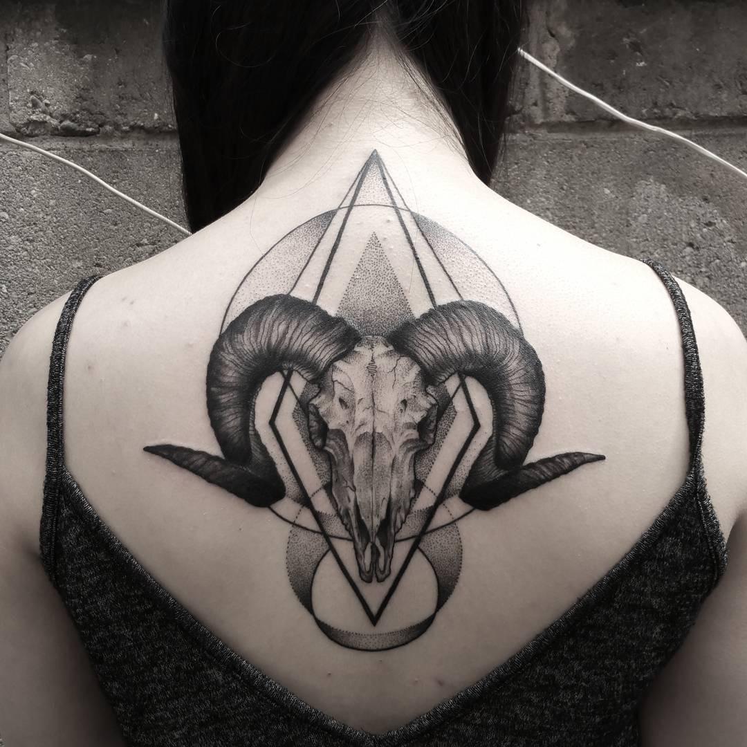 Каждая татуировка Овна носит какие-то свои индивидуальные особенности. Обычно перед созданием столь масштабного тату мастер и клиент долго выбирают эскиз. Порой из сотни разных эскизов выбирается несколько, которые в итоге объединять в уникальное изображение.