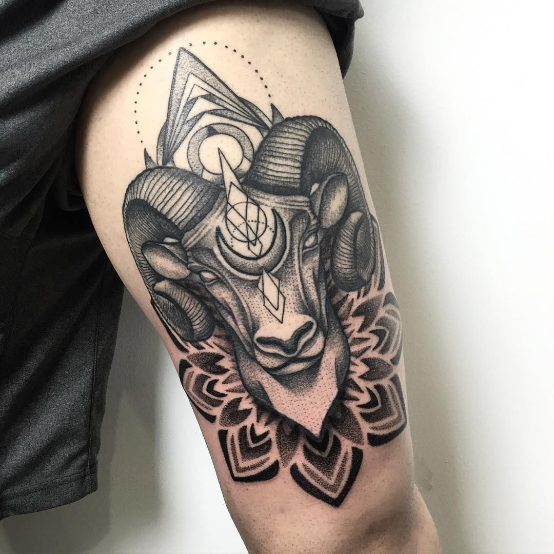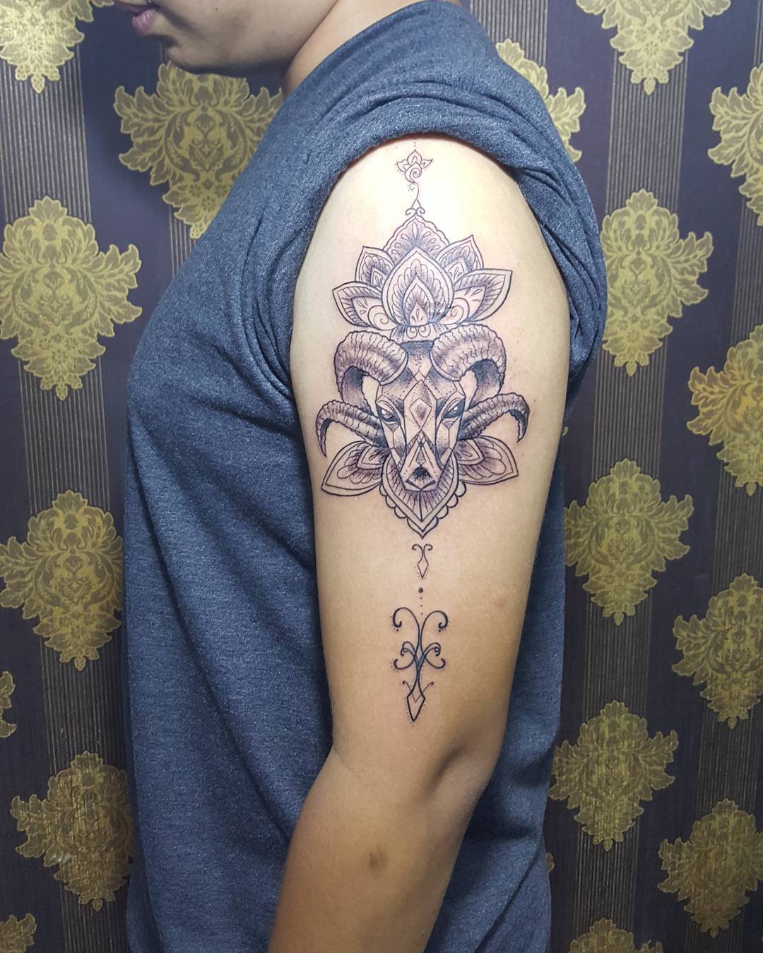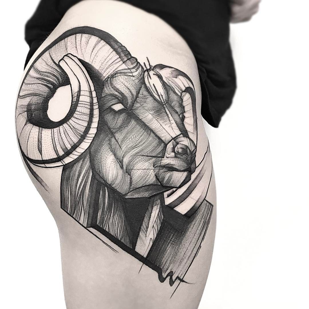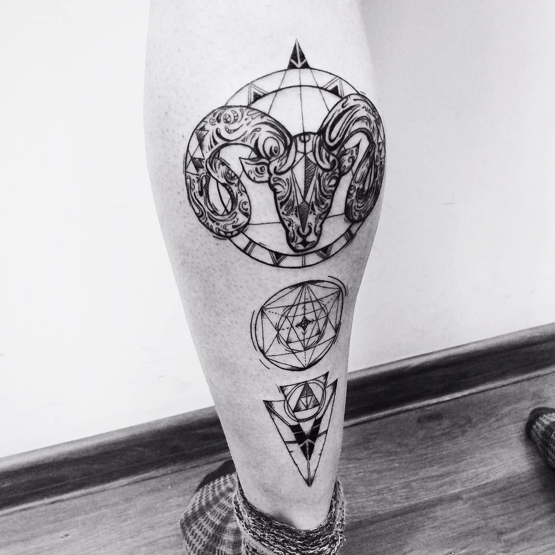 Такие варианты тату знак зодиака овен характерны для мужчин.