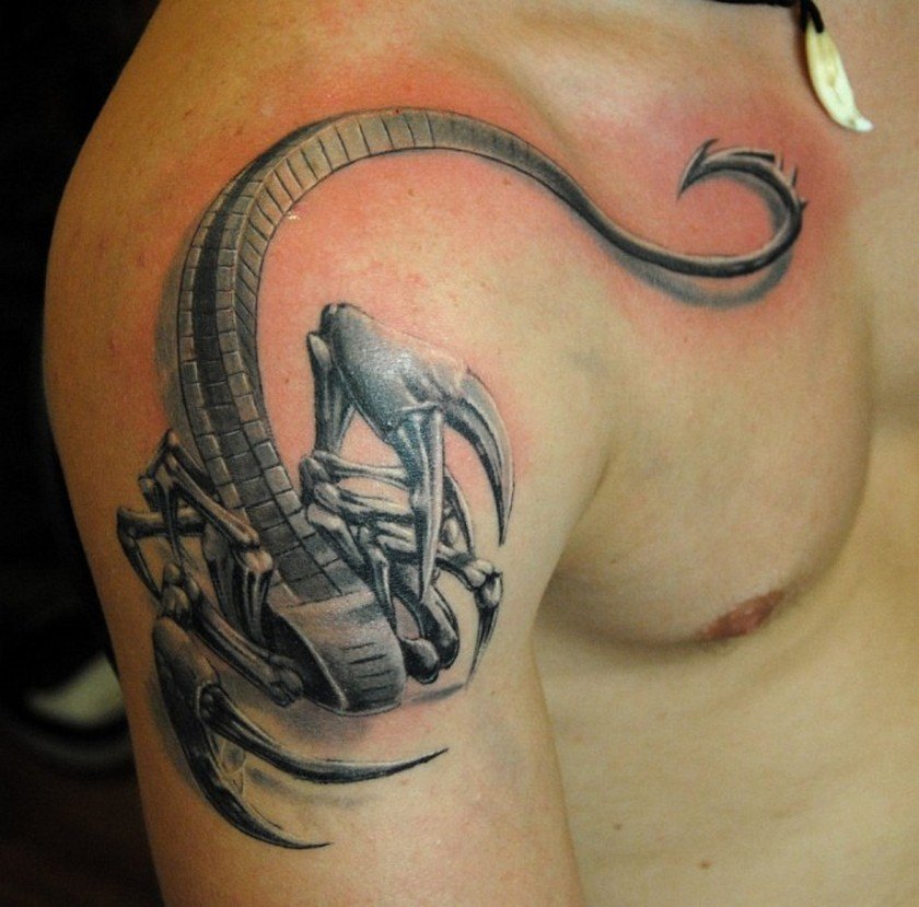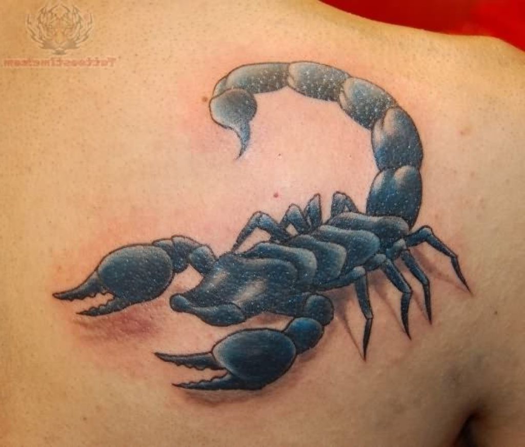 В первом случае картинку можно будет нанести на открытый участок тела. Неплохо, в частности, будет смотреться тату скорпион на плече или предплечье, особенно в том случае, если это будет тело крепкого, сильного мужчины.