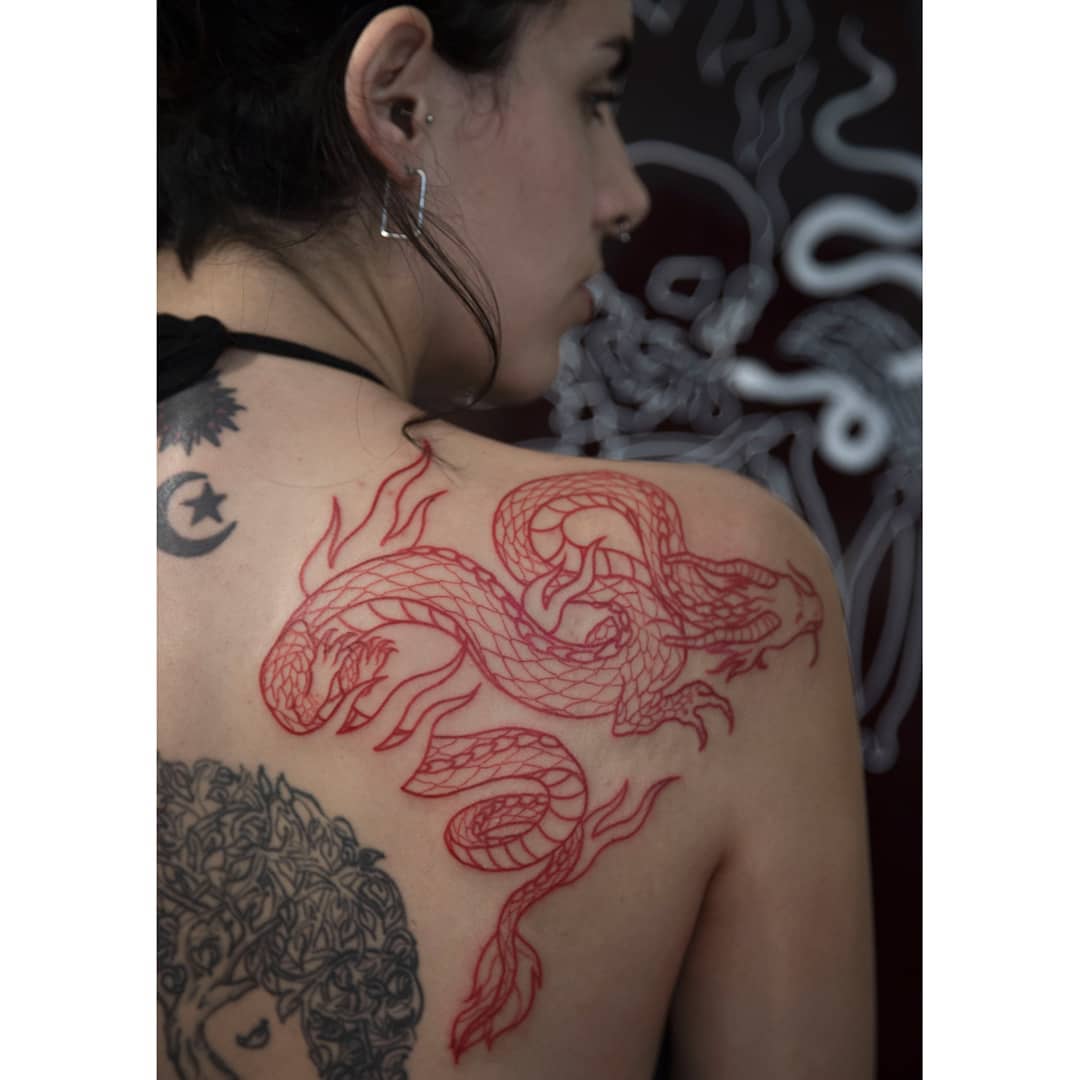 Тату с драконом представляет разные значения в зависимости от цвета.