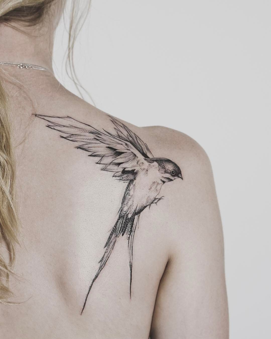 Мастера считают лопатку наиболее подходящим местом на теле для набивания тату девушкам.