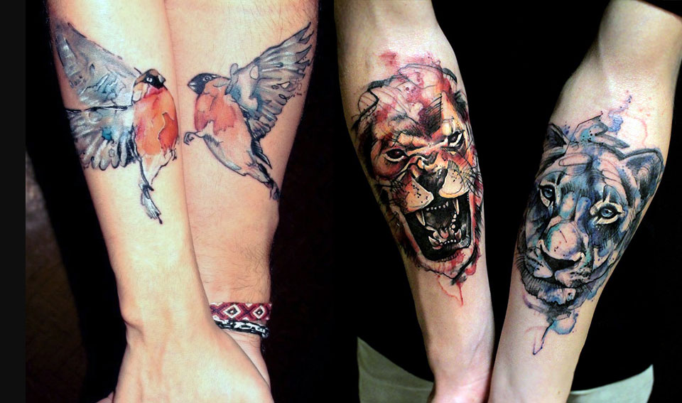 Кстати, очень популярными являются половинки рисунка, которые образуют одно целое при сведении предплечий.