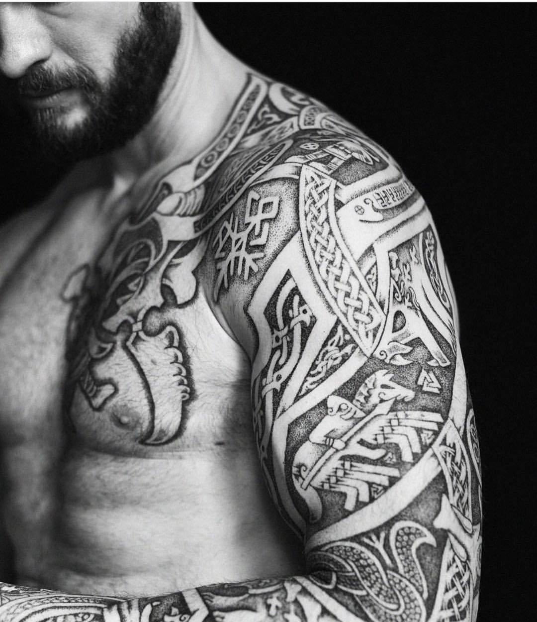 Различные татуировки в славянском стиле подчеркивают связь человека с языческой культурой.