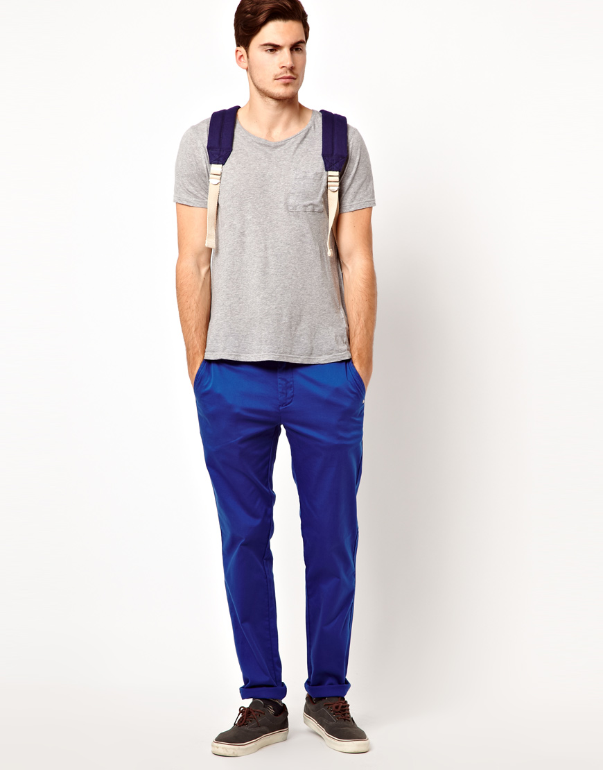 С чем носить синие мужские брюки?