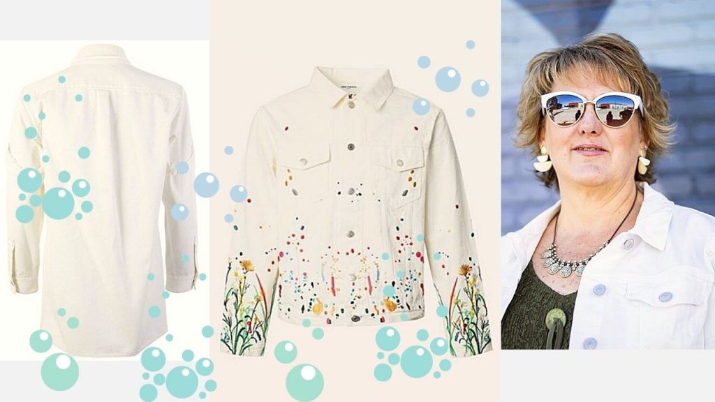 Джинсовая белая куртка позволяет создавать современные луки и стили: