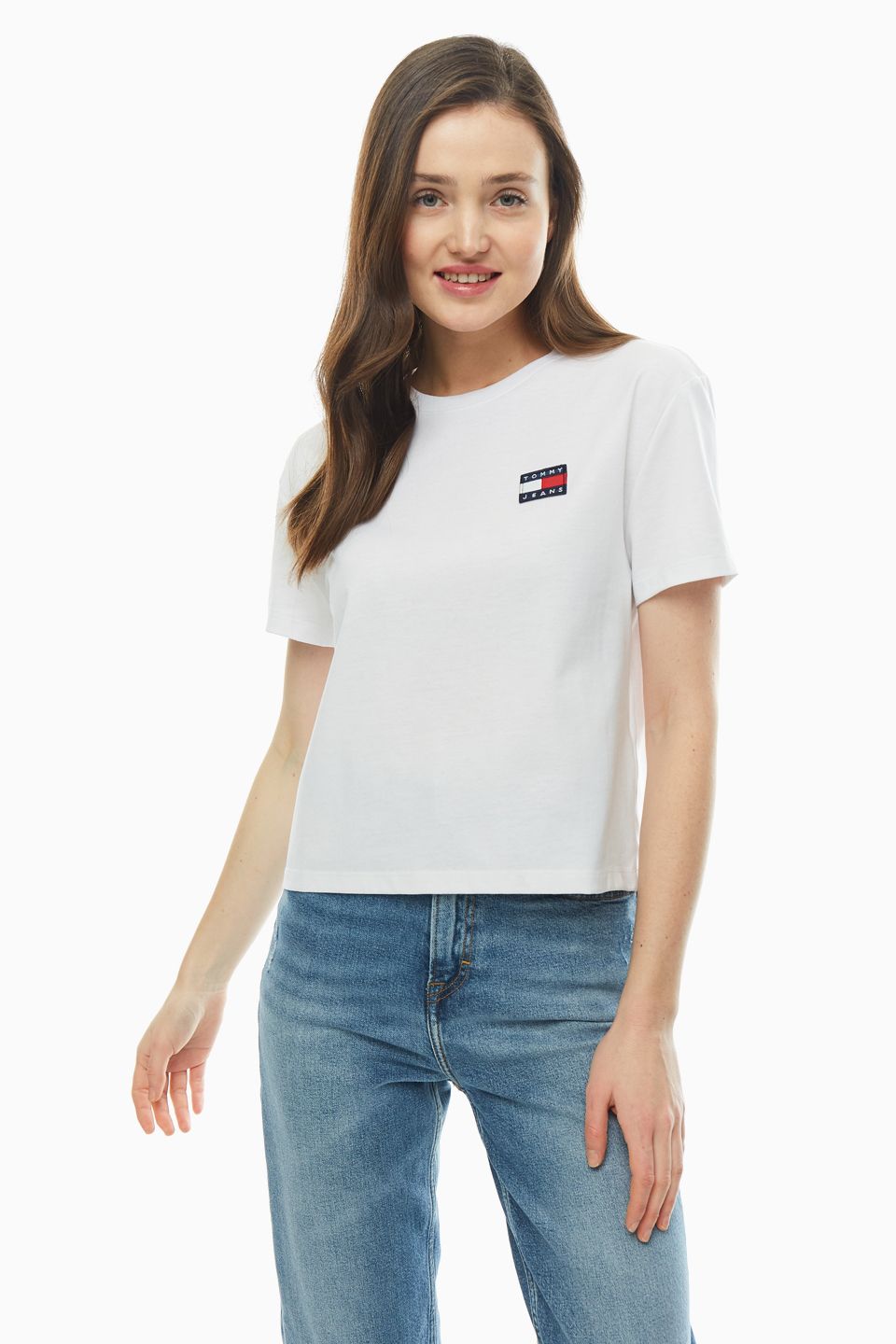Носить футболку навыпуск сейчас не рекомендуется. Теперь популярны варианты с футболками, заправленными в брюки или джинсы. Эффектно смотрится сочетание с джинсами бойфрендами, прямыми, моделями mom. Это одни из самых трендовых фасонов нынешнего сезона.