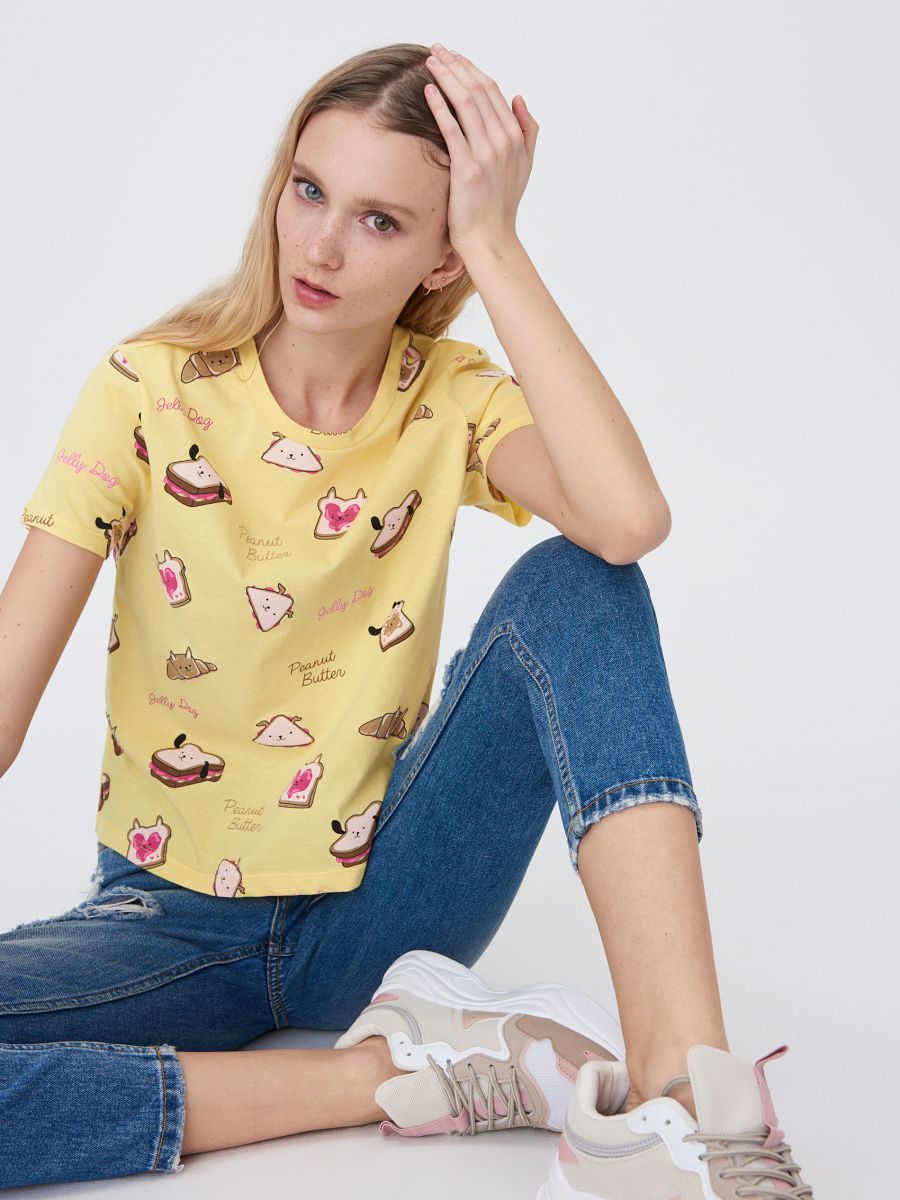 Джинсовые, кожаные, трикотажные юбки – все эти модели могут принимать активное участие в образах с футболкой. Если выбор падает на однотонное изделие, можно подобрать юбку с актуальным принтом – например, леопардовым или цветочным.