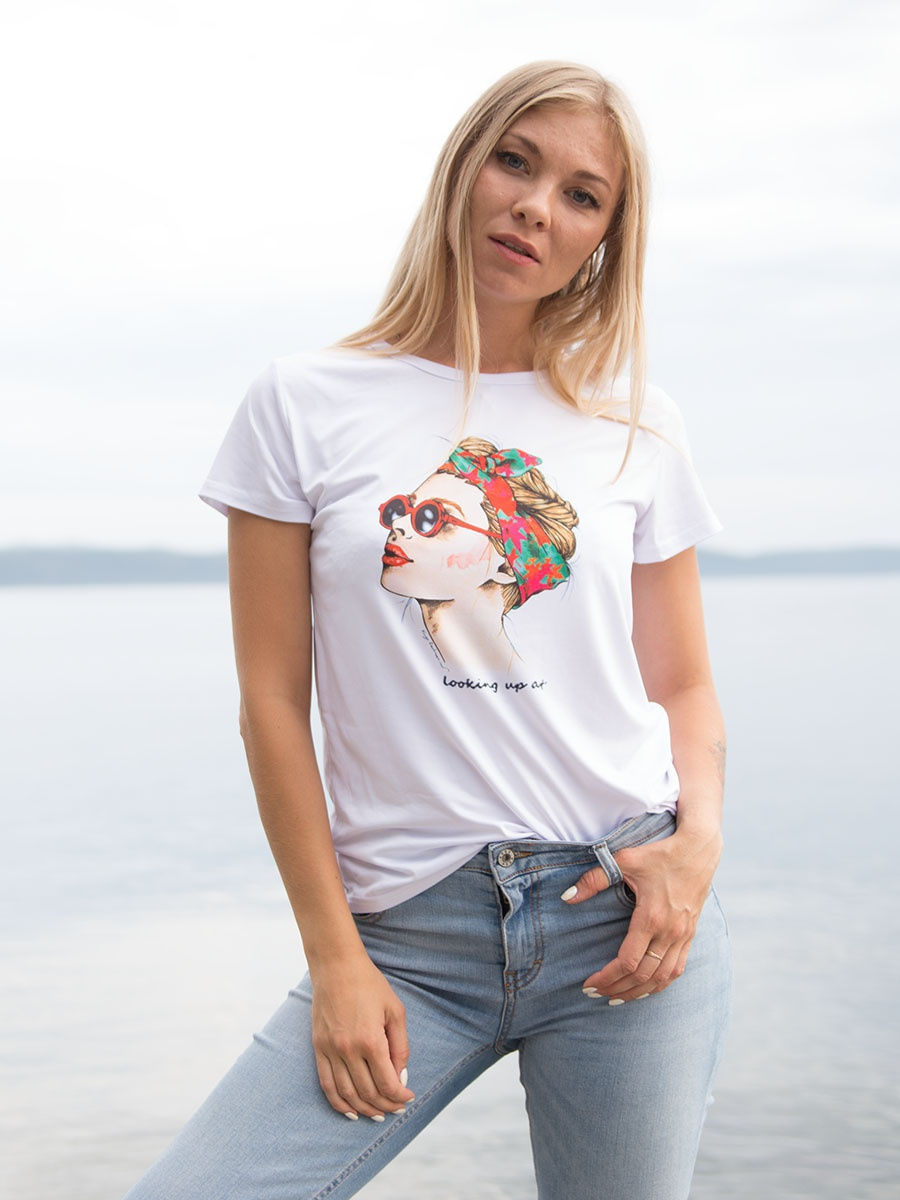 Футболка и джинсы – универсальное решение для образа любой девушки. Такой тандем с успехом может вписаться в аутфит дам от 45 и старше, при условии сочетания с туфлями-лодочками. Разнообразие футболок и джинсов настолько огромно, что у вас не возникнет проблем с созданием выразительного и неповторимого образа.