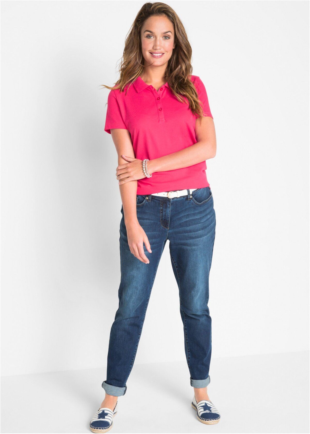 С воротником. Поло не так популярны у девушек, как у мужчин. Женская футболка этого вида комбинируется с брюками и прямой юбкой, нередко надевается под костюм как замена классической блузке. Поло с длинными рукавами носят чаще всего в осенне-зимний сезон.